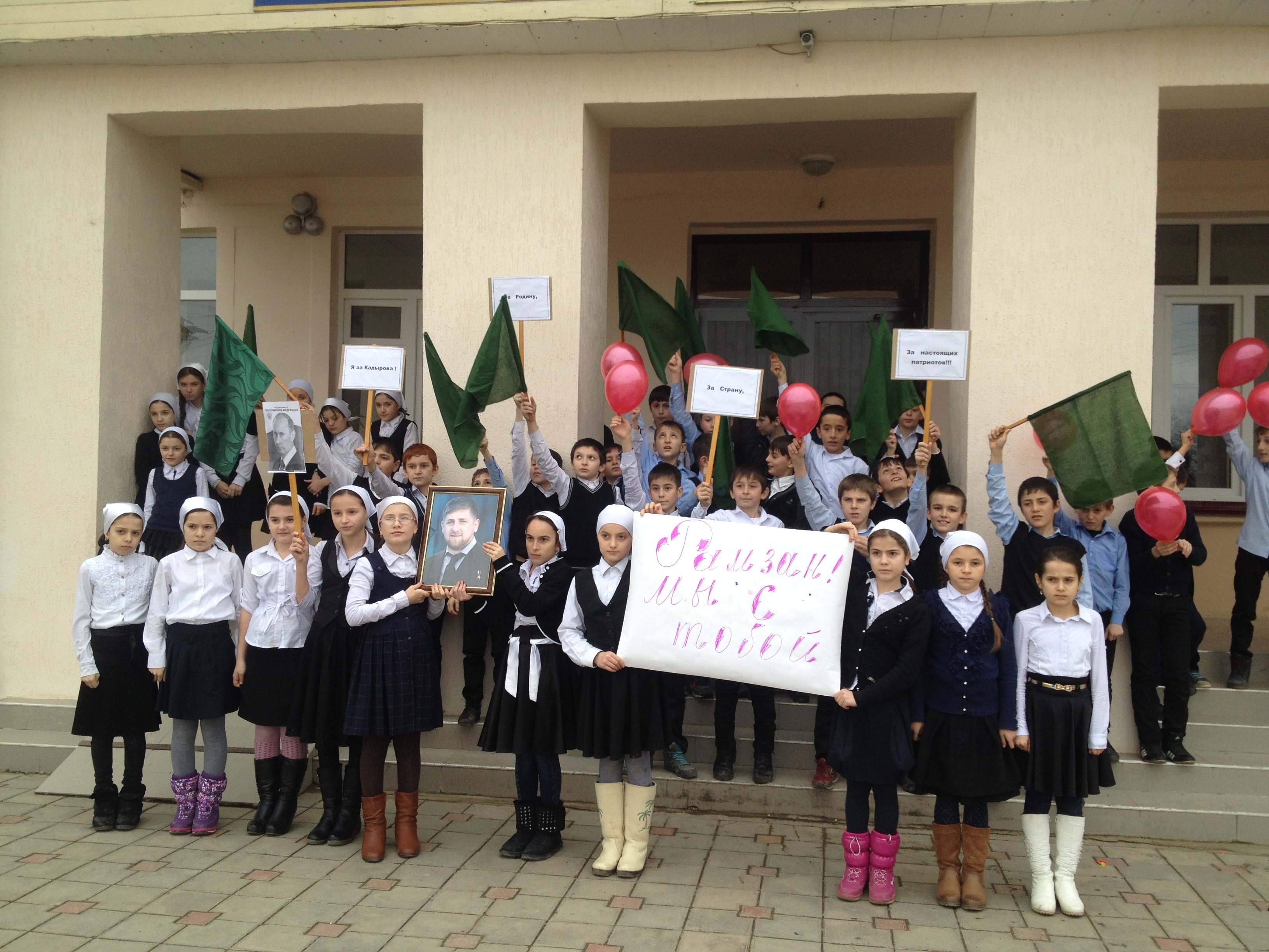 Флэшмоб в поддержку Главы ЧР Р.А. Кадырова. Смотрите наши фотографии в "Фотогаллерее".