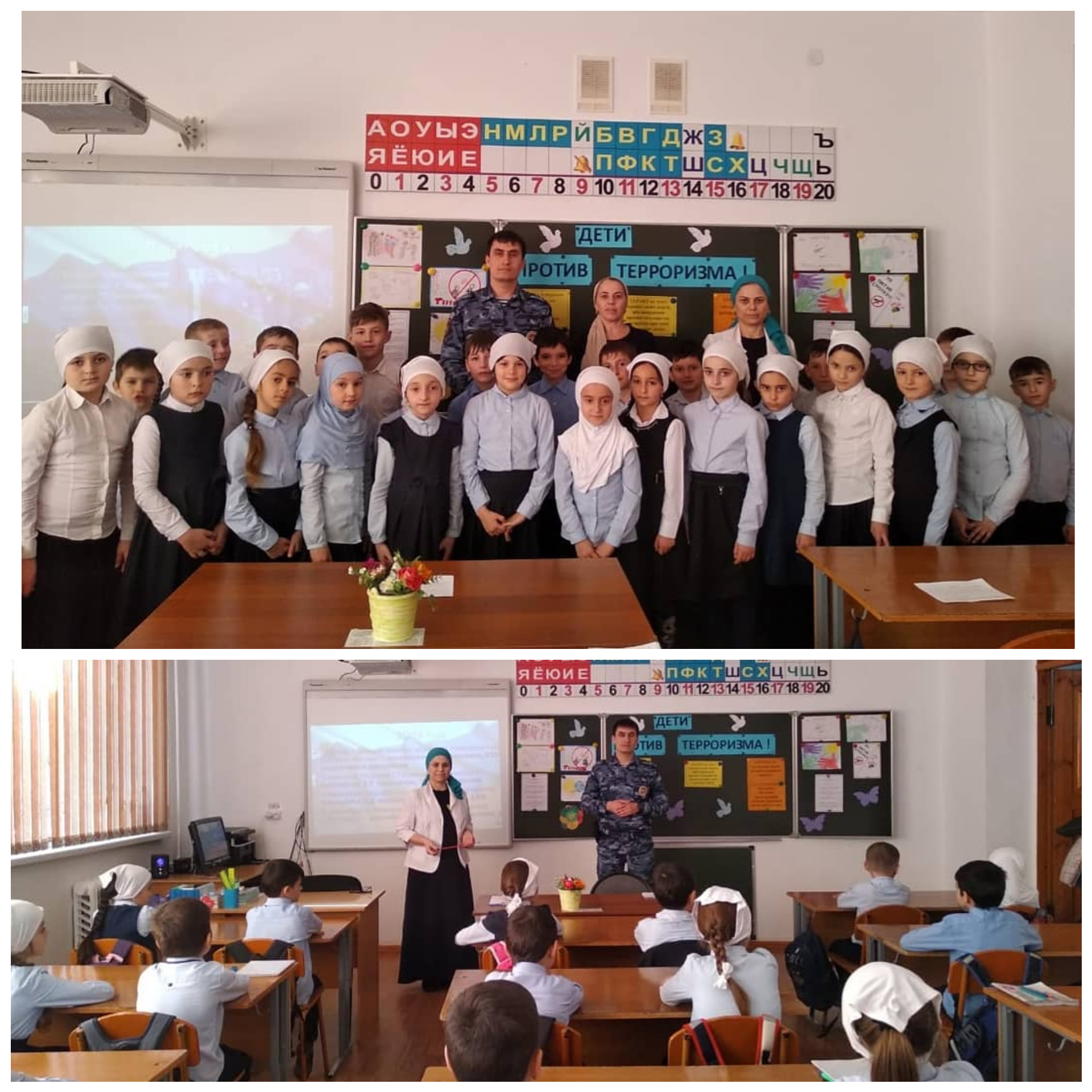 14.03.2020В МБОУ "Новотерская НОШ имени М.Амаева" учителем Абдулаевой М.А. во 2 "Б" классе проведено мероприятие на тему: "Дети против терроризма". На это мероприятие был приглашен капитан полиции Багаев А.Ж.. Также на классном часе присутствовала директор школы Умарова З.М.