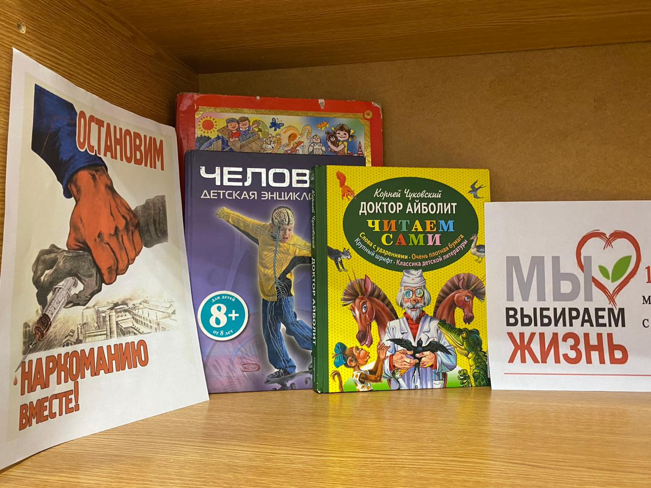 В МБОУ "Новотерская НОШ имени М.Амаева" мероприятие: книжная выствка «Наш мир без наркотиков».