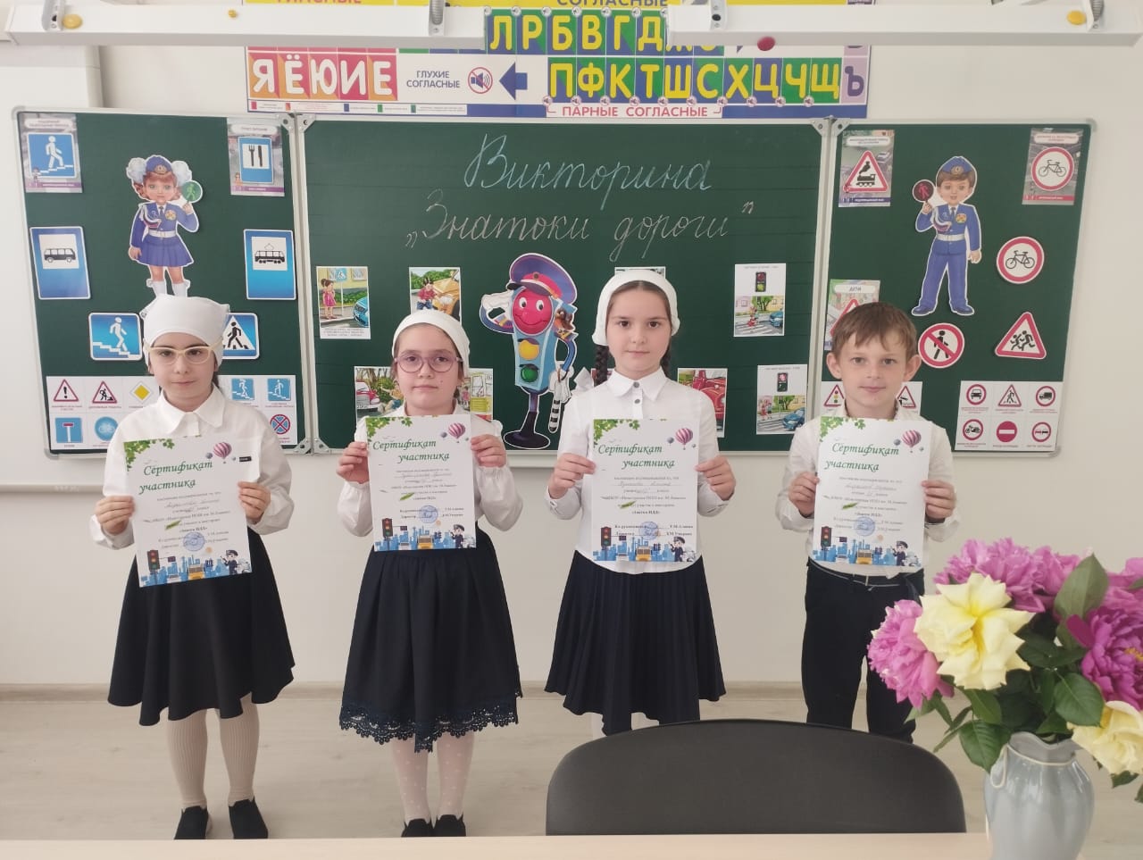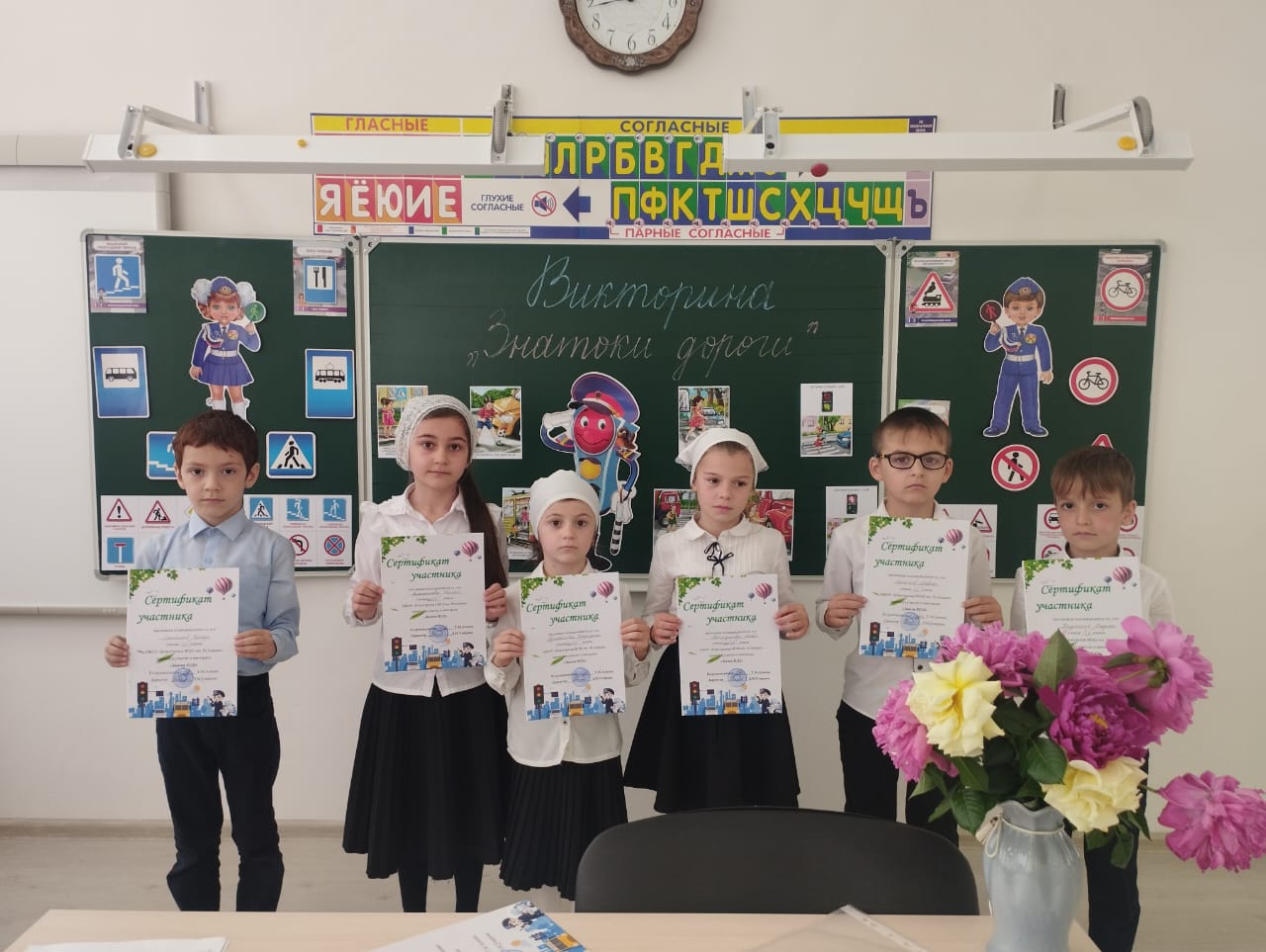 В МБОУ " Новотерская НОШ имени М.Амаева " среди обучающихся 1-х классов прошла викторина на тему: " Знатоки дороги ".