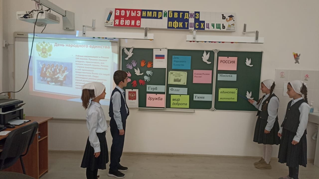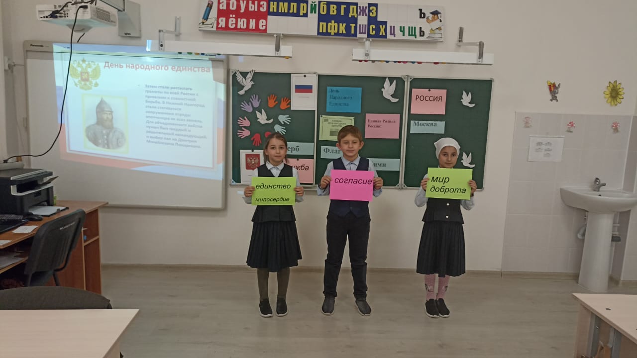 В МБОУ "Новотерская НОШ имени М.Амаева " в 1-4 классах прошли внеклассные мероприятия,посвящённые Дню народного единства