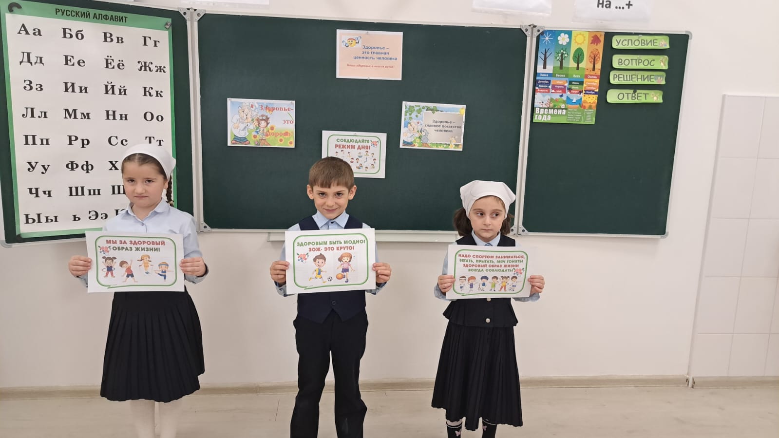 В МБОУ " Новотерская НОШ имени М.Амаева" 13 марта в 1-х классах прошли внеклассные мероприятия на тему: " Мы за здоровый образ жизни ". Мероприятия были очень интересными и познавательными.