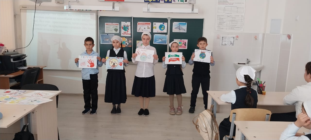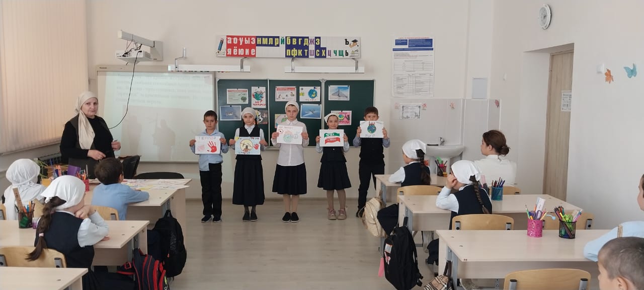 В МБОУ " Новотерская НОШ имени М.Амаева " 29 апреля в 1-4- классах прошли беседы на тему: " Действие при совершении преступления террористической направленности".
