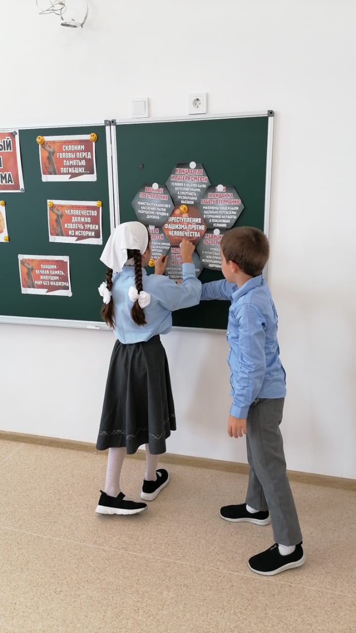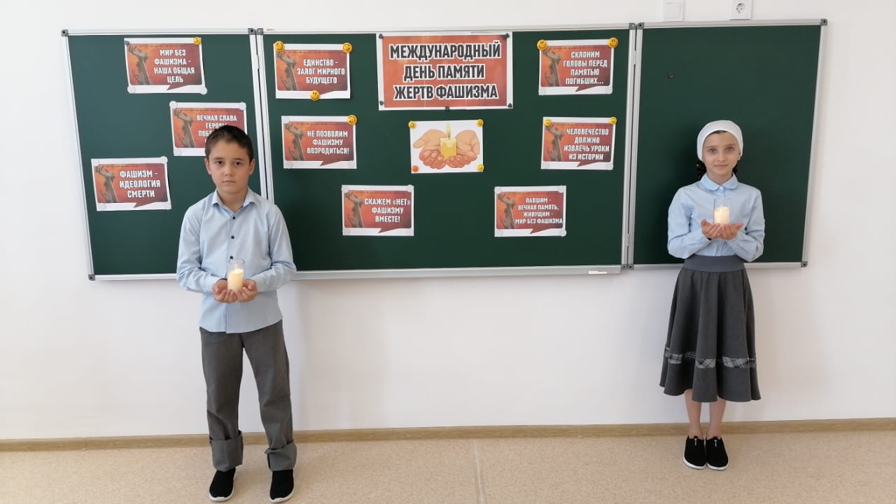 В МБОУ " Новотерская НОШ имени М.Амаева " в 3- 4 классах, прошли классные часы, беседы на тему: " Международный день памяти жертв фашизма "