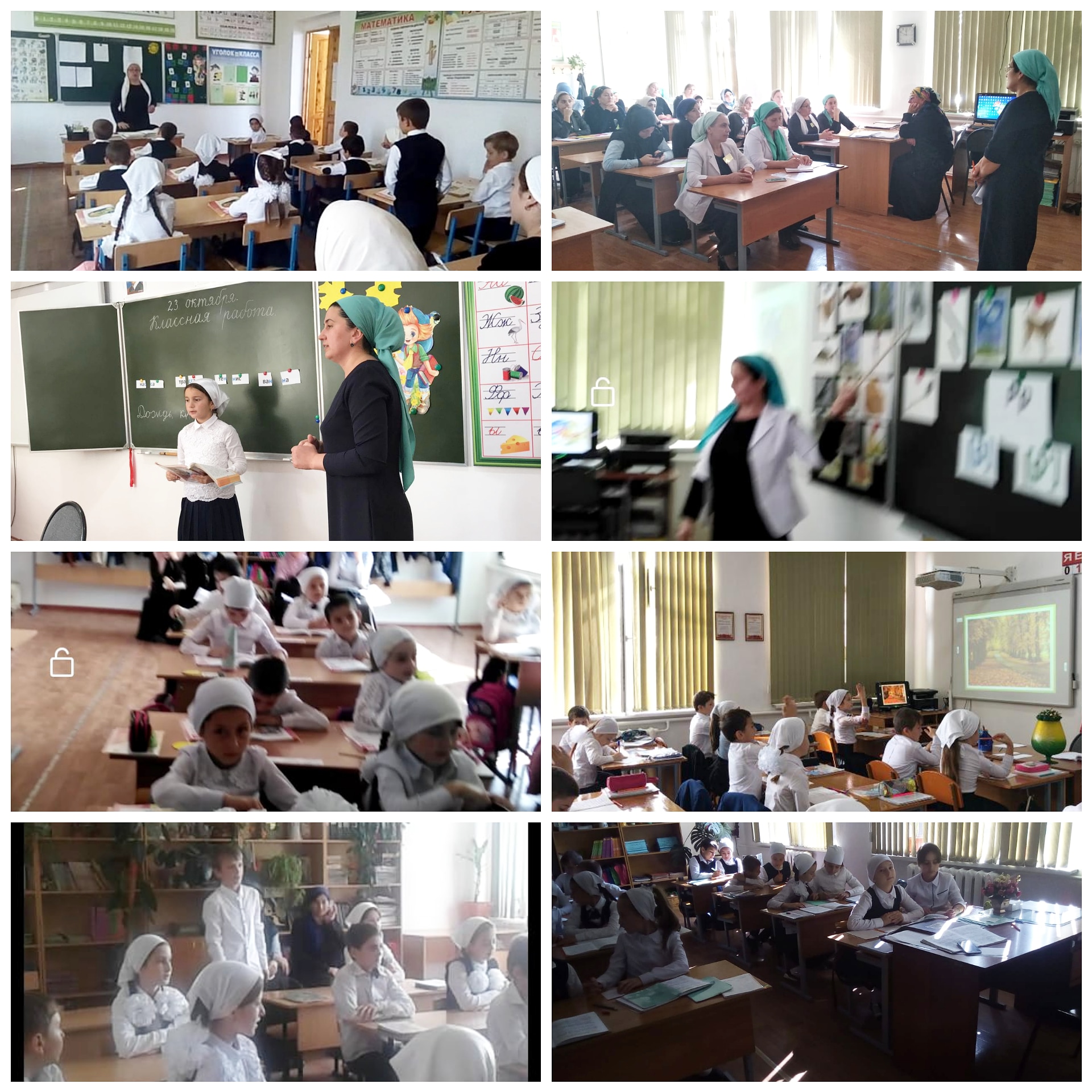 23.10.2018Сегодня в нашей школе прошло заседание РМО на тему: "Современный урок в соответствии с ФГОС - индивидуальная стратегия профессионального роста".Открытые уроки прошли в 1 "А" классе (Джабраилова А.М.) и в 1"В" классе (Магомадова Т.Х.), во 2 "А" классе (Мутузова Р.С.) и во 2 "Г" классе (Хамзатова З.С.), в 3 "А" классе (Кужулова М.Б.), в 4 "А" классе (Алханова Е.Э.) и в 4 "В" классе (Алиева Т.М.).
