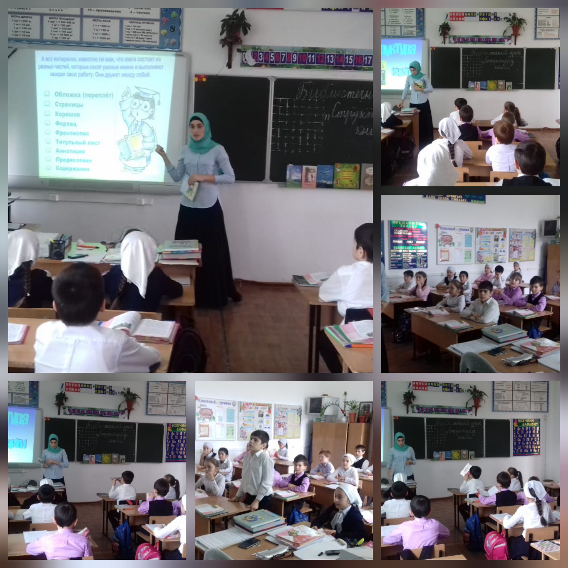 В МБОУ "Новотерская НОШ имени М.Амаева" в 3 "А"классе библиотекарь Бетирханова С.П. провела библиотечный урок на тему: "Структура книги".